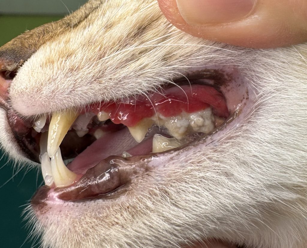 猫の口内炎では、歯の周囲の炎症が原因となっていることが多いため、