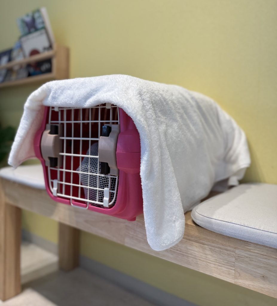 さらに、キャリー全体を大きなバスタオルで覆うと、外からの刺激を遮断でき、よりリラックスしやすくなります。