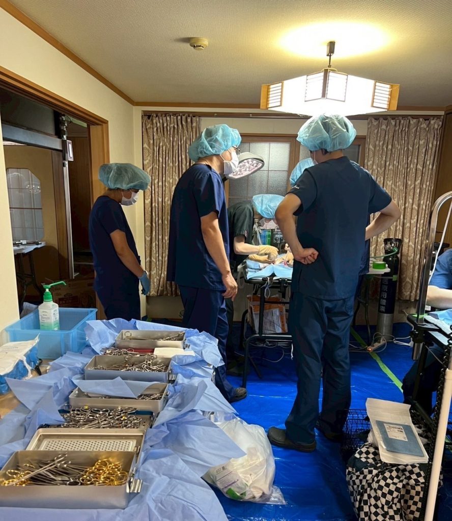 今回の活動は、麻布大学 高木教授の協力のもと、大学院生や研修医が執刀を担当。