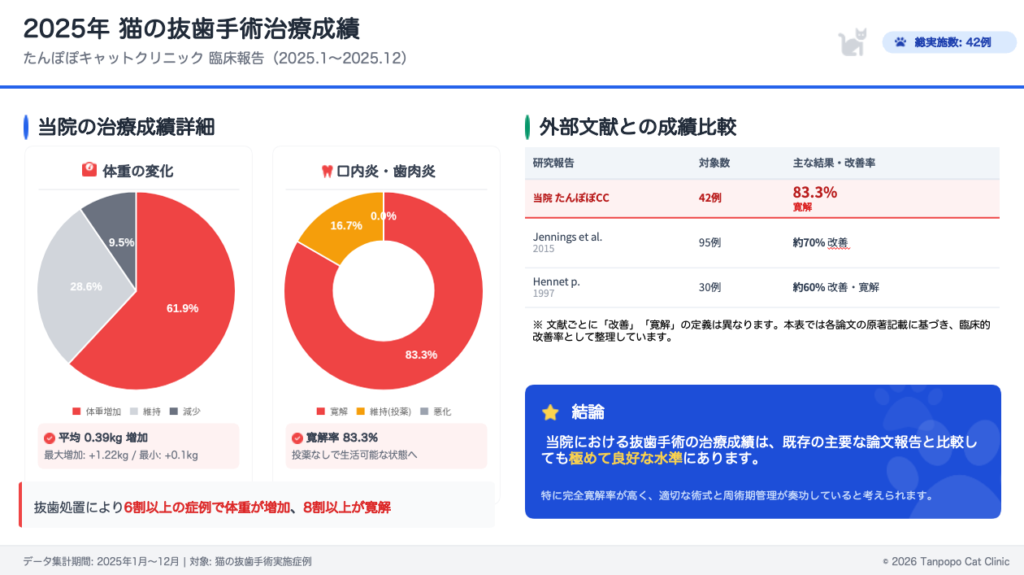 2025年 猫の抜歯手術治療成績(たんぽぽキャットクリニック 臨床報告)